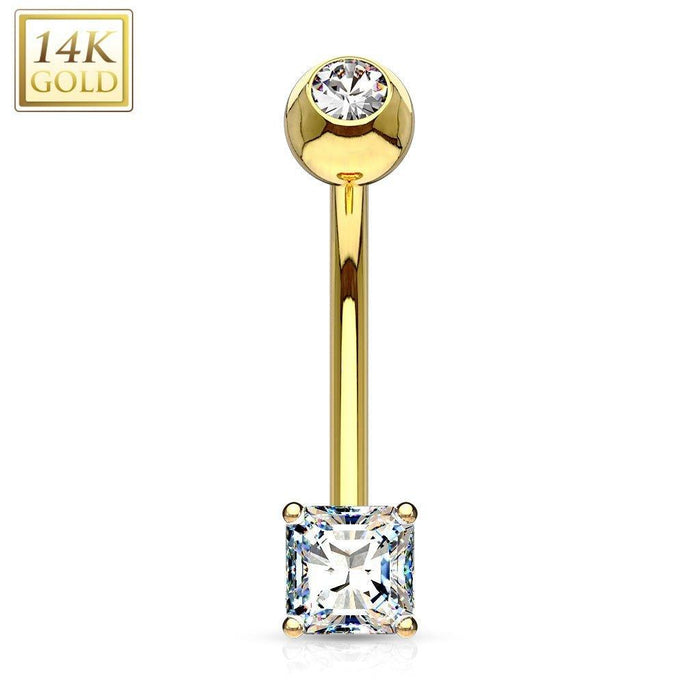 14kt Yellow Gold Square Gem Belly Bar 14G