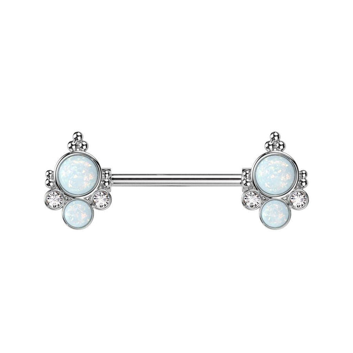 Double Opal Cluster Nipple Bar 14G